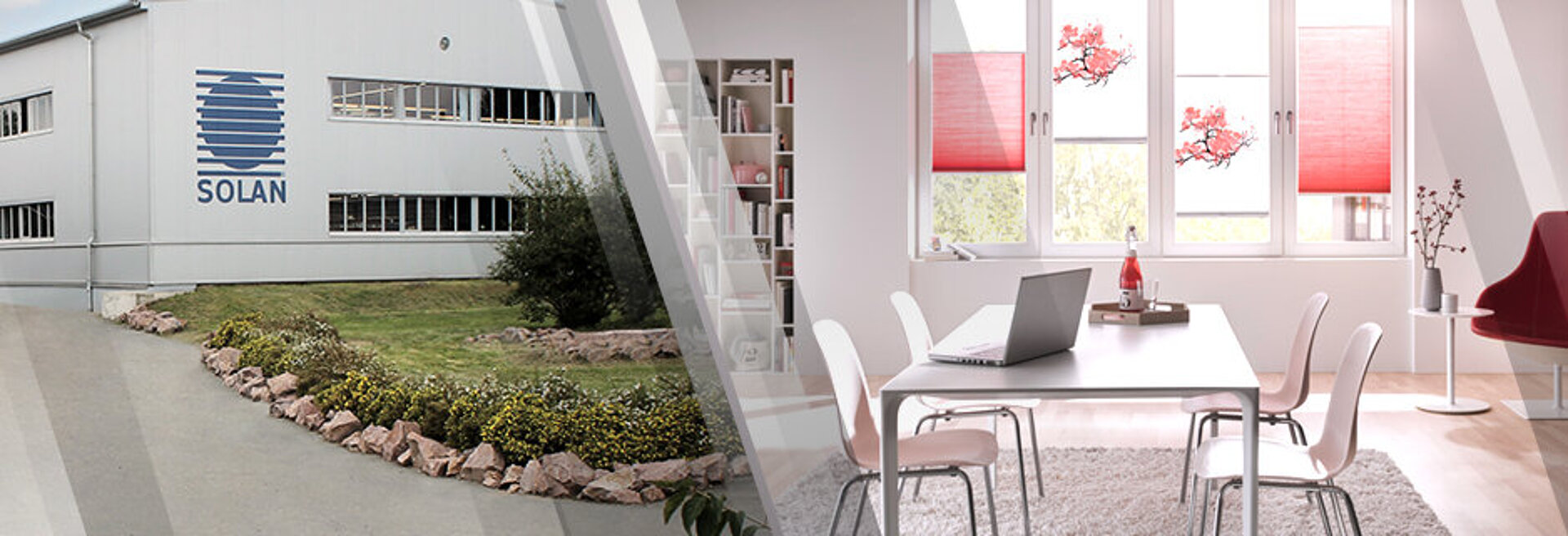 SOLAN ist ein Unternehmen mit langer Tradition und nutzt die mehr als 75 Jahre Erfahrung und Kompetenz bei der Produktion der vielfältigen Produktpalette rund um den Sonnenschutz, wie Plissee, DUETTE®, Vertikal, Rollo, Paneel, Jalousie, Rollladen und Insektenschutz.